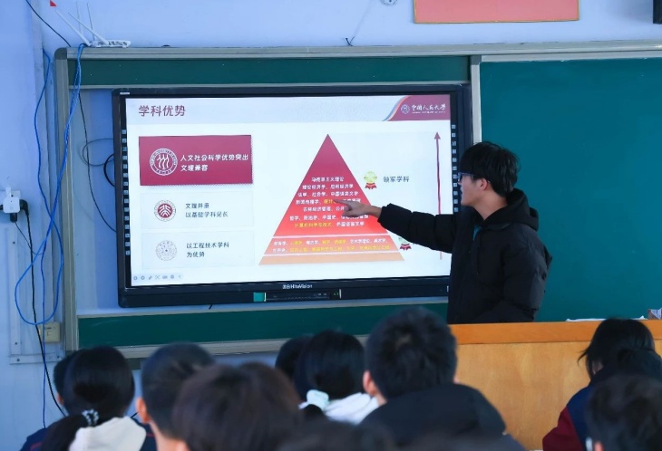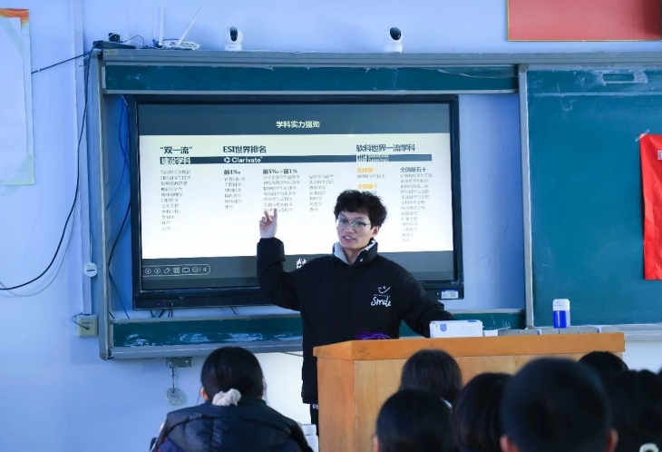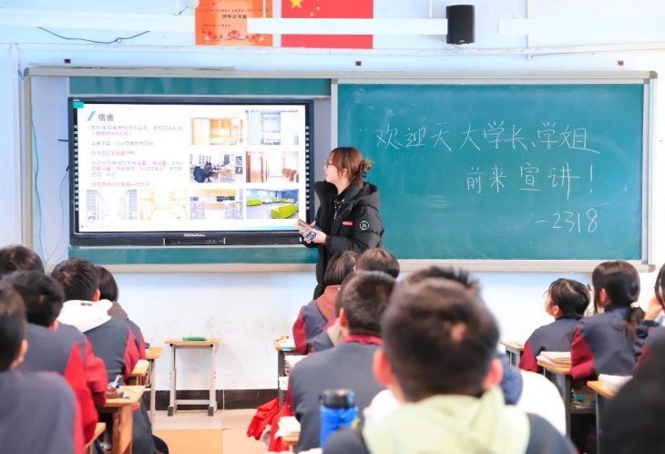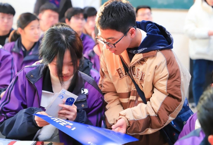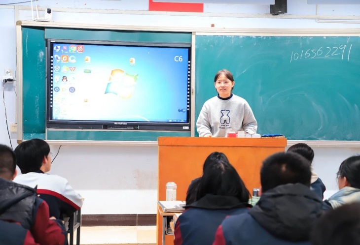 随后,毕业生们带着满满的热情与干货走进教室,为学弟学妹们带来一场知识与梦想交织的宣讲盛宴。在讲台上,他们化身为领路人,将自己总结的学习方法倾囊相授。从如何制定高效的学习计划,到如何应对不同学科的学习难点;从如何保持良好的学习心态,到如何合理分配学习时间,每一个细节都凝聚着他们的智慧与经验。不仅如此,毕业生们介绍了自己所在的大学,从美丽的校园风光到丰富多彩的校园文化,从雄厚的师资力量到优质的学术资源,让高二的同学们对大学有了更直观、更深入的了解。他们的分享,如同在学弟学妹们心中种下了梦想的种子,帮助他们明确了大学目标,坚定了为理想而奋斗的信念。