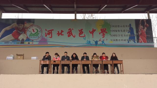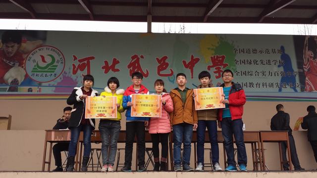 2014年2月24日中午,初中年级期末考试总结大会在武中操场隆重召开。会议由李主任主持,会上分别为考试优秀班级、优秀个人颁奖。李主任总结讲话希望获奖的同学戒骄戒躁、再接再厉,百尺竿头,更进一步;希望其他同学在新的学期里,以受表彰的同学为榜样,顽强拼搏、刻苦努力、奋起直追、争创佳绩。