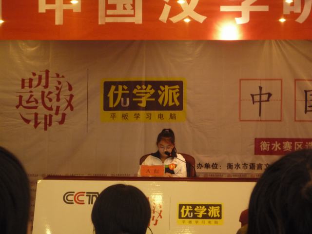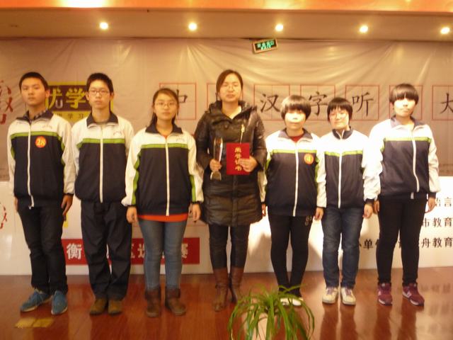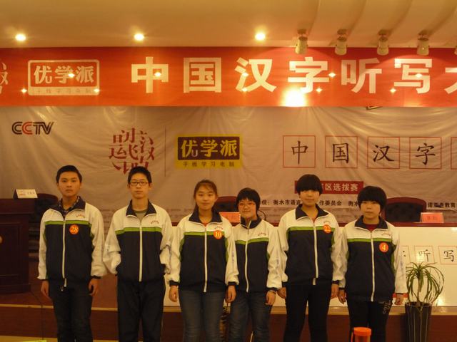 2014年3月1日我校学生参加了衡水市第二届中国汉字听写大会”市选拔赛。赛前学校认真组织开展了汉字听写活动,并利用自习时间对参赛选手进行辅导。由于同学们准备充分,在比赛中充分发挥,在经过一番激烈角逐后,我校选手在全市12个代表队中取得了第三名的好成绩。市教委对进入市级选拔赛前三名的学校及优秀选手给予了表彰,颁发了获奖证书和奖杯。此次活动既弘扬了祖国优秀传统文化,又提高了学生规范、准确、工整地书写汉字的能力。