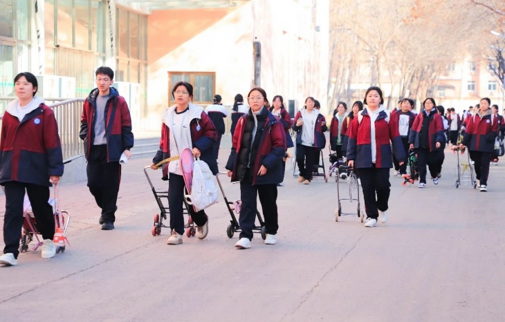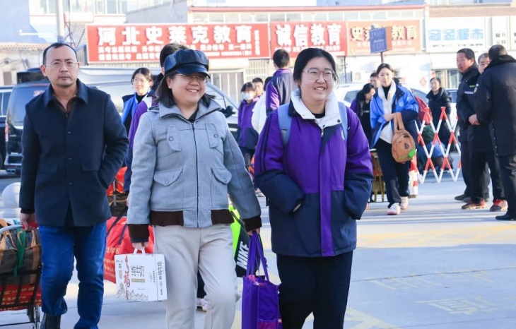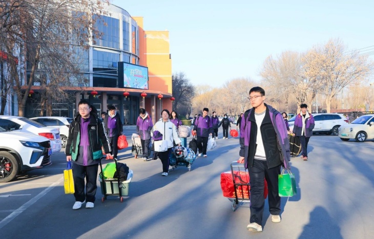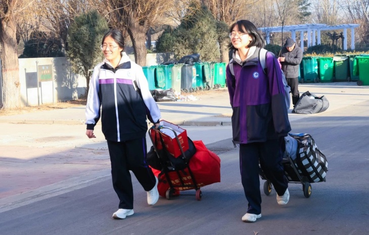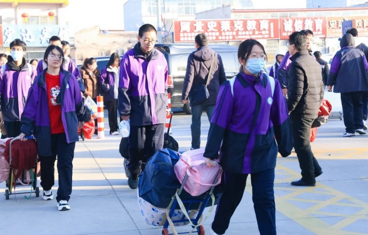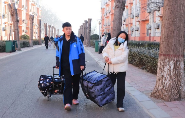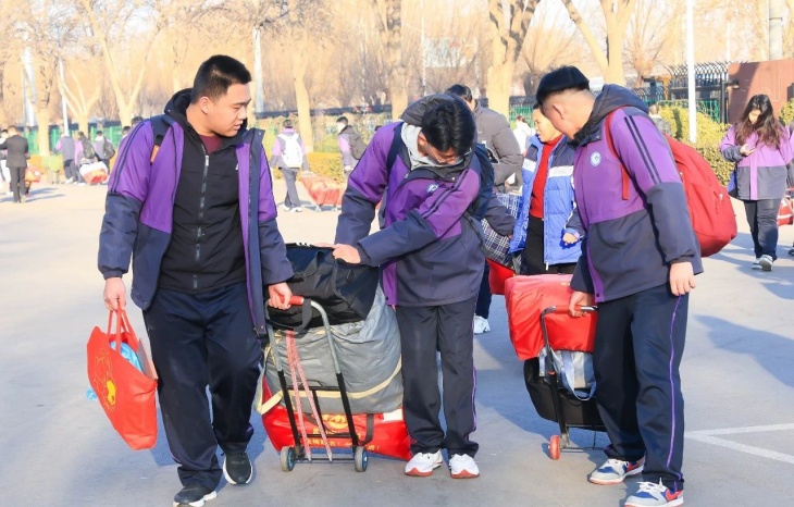 2月13日,宏达学校的校门口熙熙攘攘,热闹非凡。许多学生与家长携手同行,他们拖着大小不一的行李箱,背着鼓鼓囊囊的书包,脸上洋溢着温暖的笑容。家长们眼神中满是关切与不舍,一边走一边细细叮嘱:“在学校要好好吃饭,记得给家里打电话。”“和同学相处要和睦,遇到问题记得找老师。”孩子们则不住点头,眼神中透着坚定与期待。