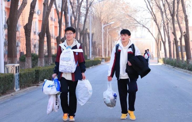 在人群中,也有不少独自拿着行囊的学生,他们步伐矫健,自信满满,有条不紊地走进校园。阳光洒在他们身上,勾勒出青春最美的轮廓。他们用行动诠释着成长,展现出宏达学子的风采。