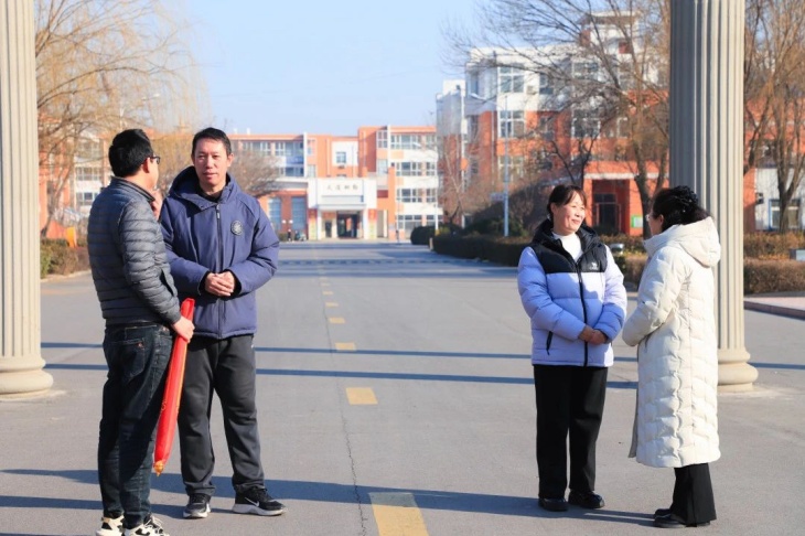 年级主任孙月梅(右一)、班主任袁佳瑞(左一)与学生家长合影留念