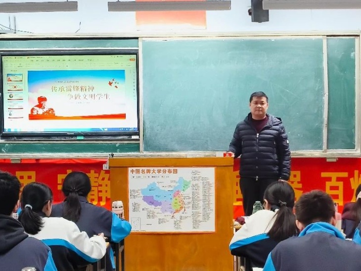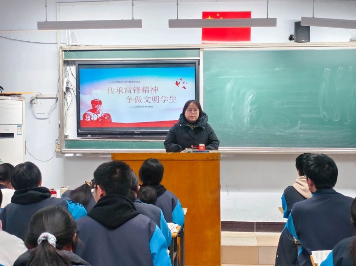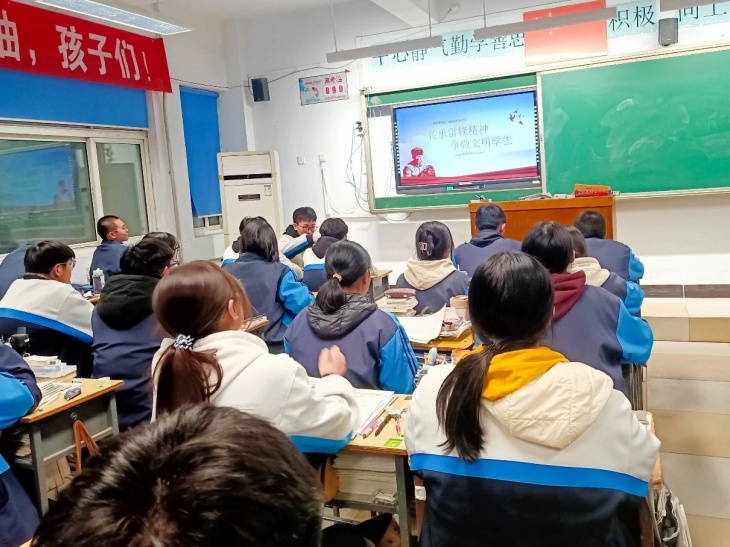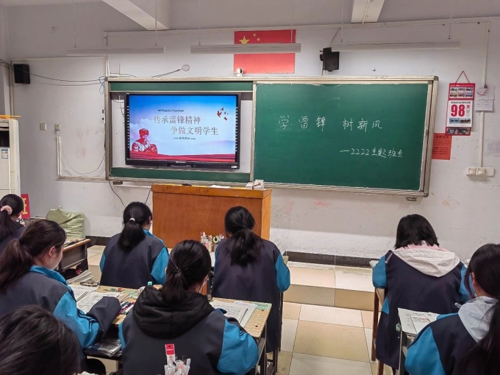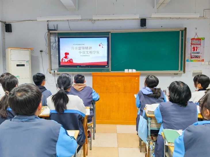 班会伊始,教室里播放了精心准备的雷锋事迹短片和PPT。一段段感人至深的故事、一幅幅生动鲜活的画面,将雷锋短暂却光辉的一生呈现在同学们眼前。影片中,雷锋同志在工作上的敬业精神、在生活中对他人的无私帮助,让同学们深受触动,也为本次班会营造了浓厚的学习氛围。