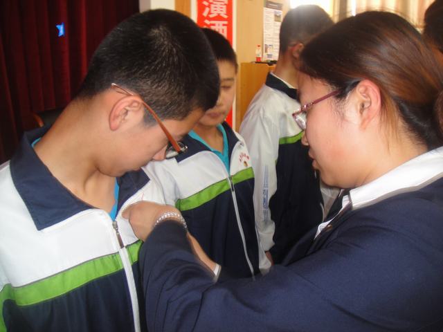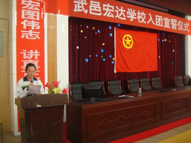 伴随着庄重嘹亮的团歌,入团仪式正式开始。首先,新团员宣誓,然后各班主任们为新团员佩戴了团徽。接着新老团员代表表达了对共青团组织的无限热爱和为团组织增光添彩的豪迈激情。最后由政教处副校长鲁义昌做了总结讲话,他向新团员表示祝贺并提出了希望,希望他们在今后的学习、生活中以团员的标准严格要求自己,努力学习,追求进步,为早日成为国家栋梁之才而奋斗。