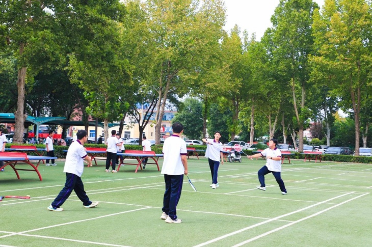 乒乓球台,精彩的对决引来围观的同学阵阵喝彩