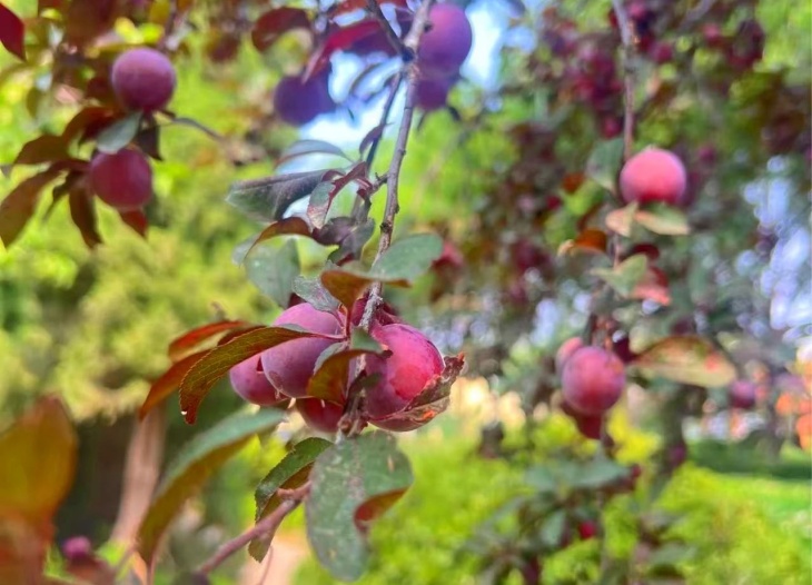 漫步校园小径,万物生息如乐章般清晰:青涩石榴含蓄蕴藏力量,李果沉甸甸压弯了低低的枝梢,仿佛自然以丰盈默默祝福学子似枝丫般不辜负光阴重量;满园月季肆意绽放热情,热烈如火灼灼喷发;池中锦鲤摆尾悠游,漾开涟漪,宛若寄寓前途顺遂通达。