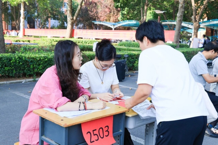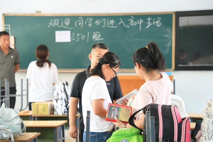 报到处在教学楼前整齐布置,各班班主任与科任老师翘首以盼,期待着新生力量的加入。同学们依次排队签到,领取校园卡、床单被罩等生活用品。老师们耐心讲解着入学事项,细致周到的服务让报到流程高效而有序地开展。