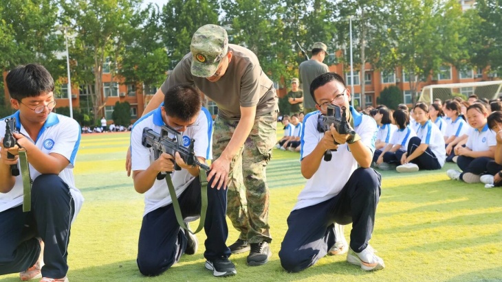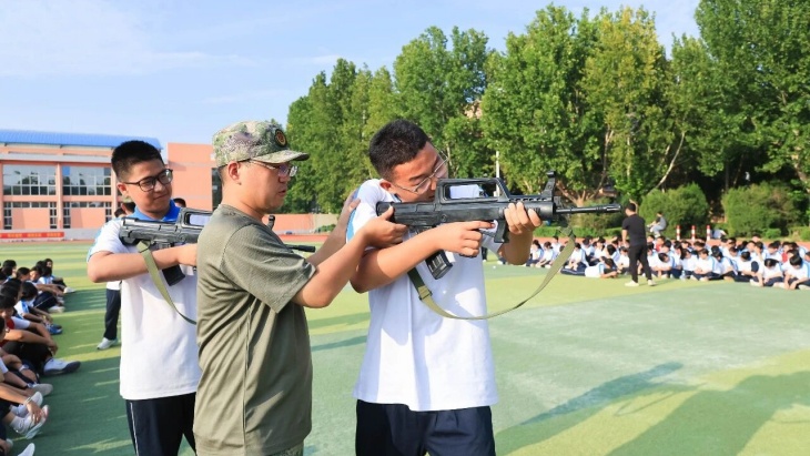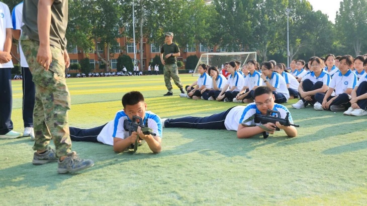 军训进行时秋阳正好,青春正燃。武邑宏达学校的训练场上,一张张稚嫩的脸庞充斥着严肃与认真,学生们正在教官的指导下进行模拟枪支训练,“卧倒、抵肩、瞄准、击发!准星对准靶心!三点一线!”一场别开生面、意义深远的国防教育与素质拓展活动正在操场上进行的如火如荼。