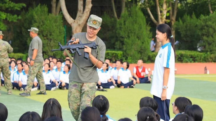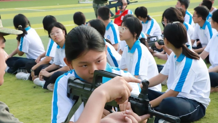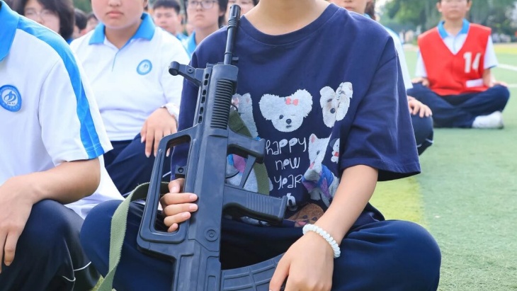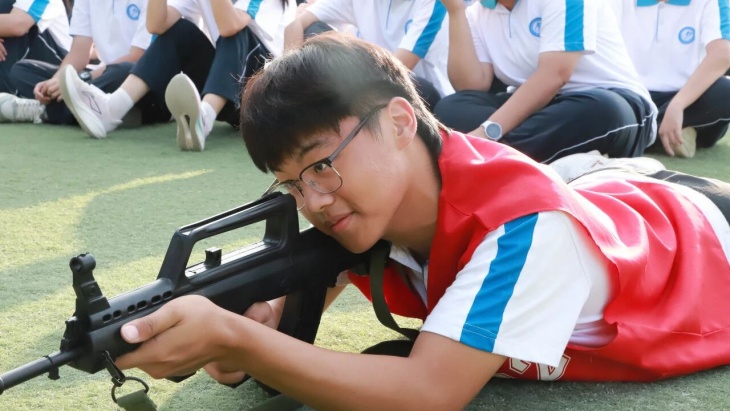 学生们在训练中展现出了极大的热情和毅力。虽然汗水浸透了衣服,但每个人的目光依然坚定。他们反复练习持枪、瞄准、战术移动等动作,向教官请教动作要领,每个姿势都力求精准,展现出对军事技能的认真态度。