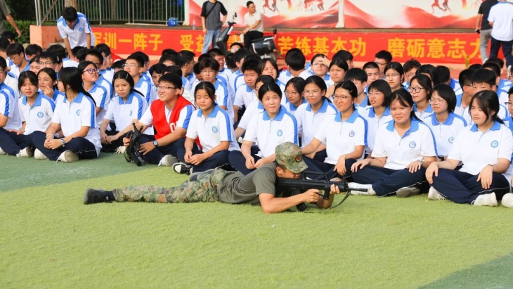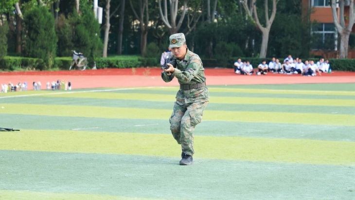 教官团队以军人标准严格要求,耐心细致地指导每个动作要领。"注意三点一线""保持身体平衡"......一声声专业的指导在训练场上回荡。教官们不仅传授军事技能,更以自身的军人作风为学生树立榜样,将纪律意识、团队精神融入每个训练细节。