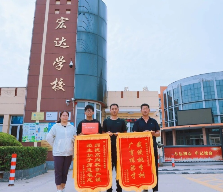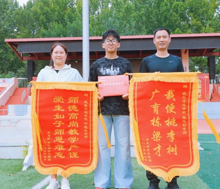 近日,我校传来振奋喜讯——体育生贾天初同学以优异成绩被北京体育大学录取!下午,贾同学与其父手捧录取通知书、两面鲜红锦旗重返母校,用最质朴的方式表达感恩。