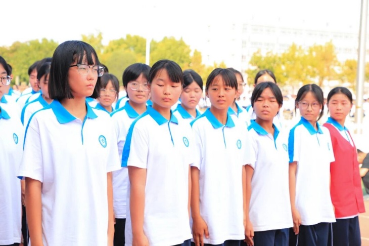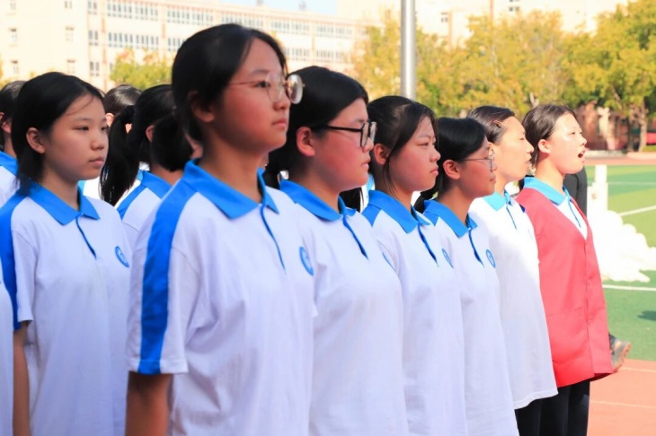 庄严的升旗仪式为汇演拉开帷幕。国旗护卫队迈着铿锵有力的步伐,护卫五星红旗走向升降台,在嘹亮的国歌声中,鲜艳的国旗冉冉升起,全体师生庄严肃立、目光如炬,这一刻,青春与家国情怀同频共振。