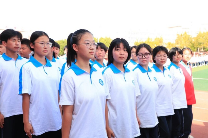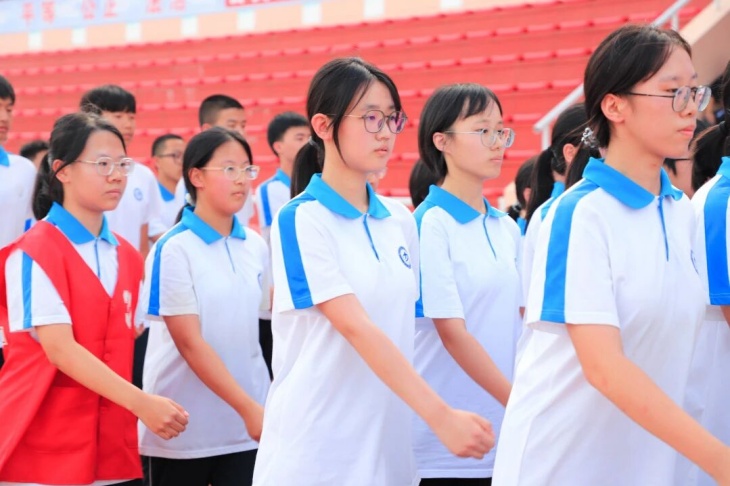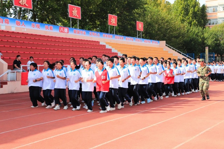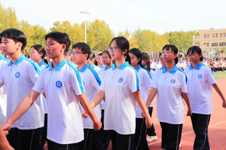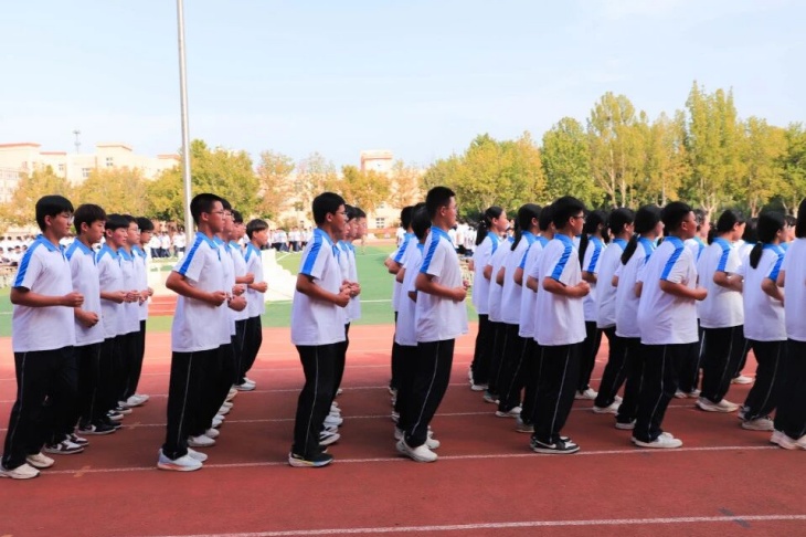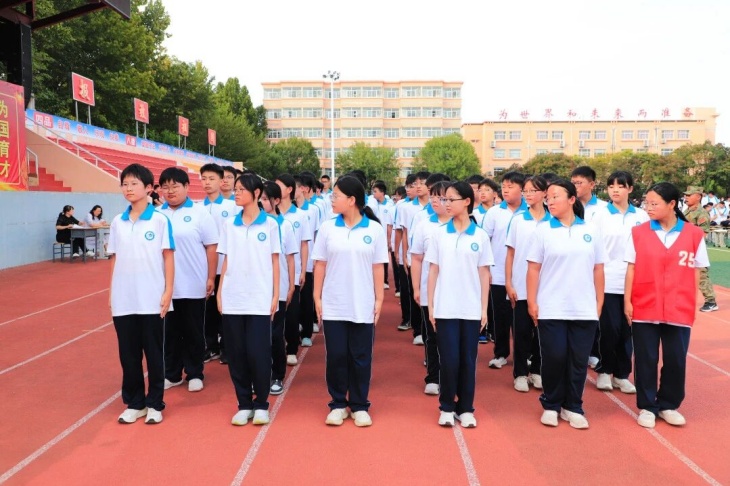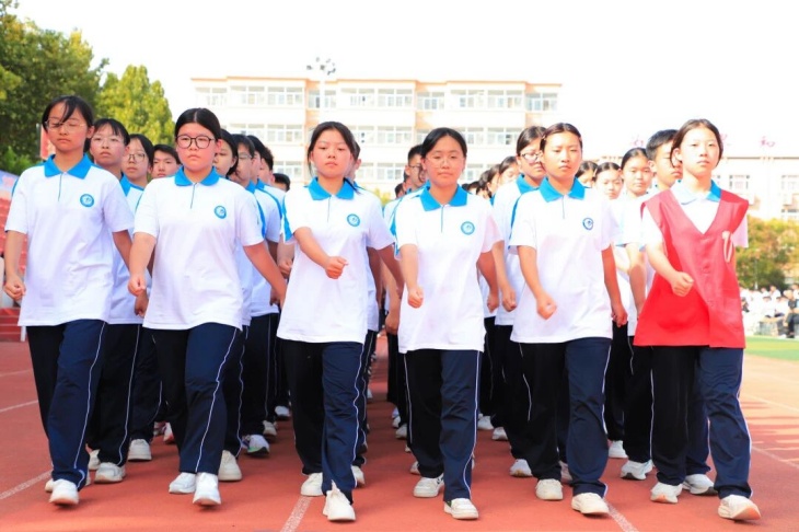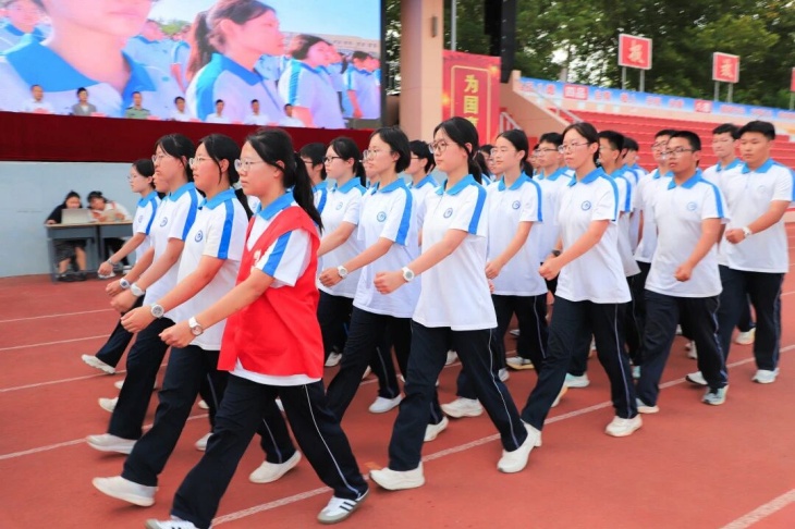 队伍整齐划一;听!口号响彻云霄。随着指令的下达,各高一队伍依次登场。整齐的步伐踏地有声,标准的军姿挺拔如松。从队列变换到训练展示,同学们动作协调划一,眼神中满是自信与坚毅。他们褪去了初入校园的懵懂与青涩,彰显了新一代学子奋发蓬勃的精神与朝气,赢得了现场师生的阵阵掌声。