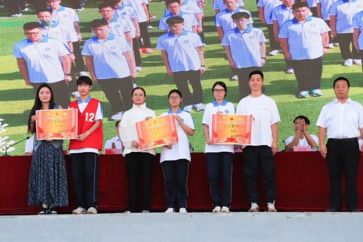 最激动人心的颁奖环节上,学校对军训期间表现突出集体与个人进行了表彰,“宿舍内务整理优秀班集体”、“军训成果考核优秀班集体”、“军训优秀教官”等多项荣誉实至名归,掌声与欢呼声此起彼伏。
