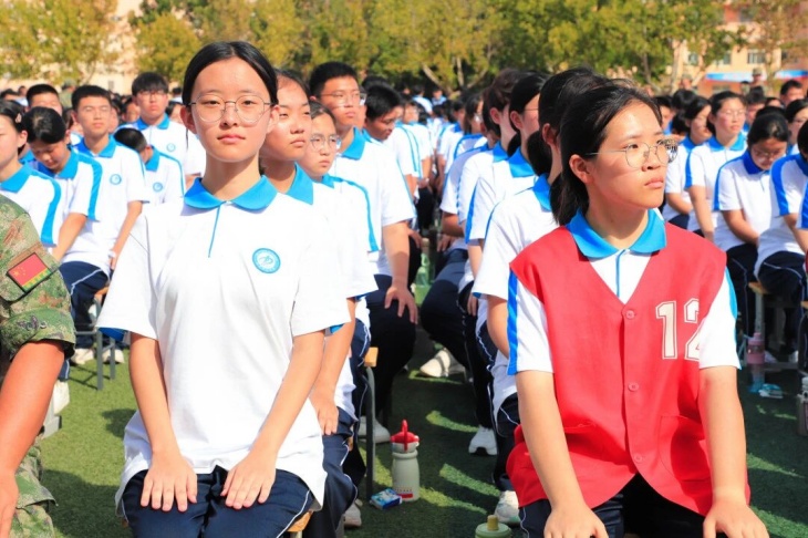在2025级高一新生顺利完成为期一周的军事训练后,一场展现青春风采、检验训练成果的军事汇演正式拉开帷幕!9月7日下午,2025年高一新生军训成果考核大会在操场隆重举行。全体高一新生以最饱满的热情、最昂扬的姿态,交出了一份充满青春力量的军训答卷。