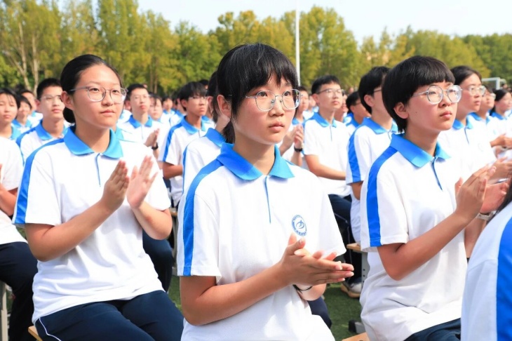 汇演的尾声,副校长金耀辉发表讲话。他首先向圆满完成军训任务的新高一学子表示祝贺,向辛勤付出的教官、班主任及工作人员致以感谢。“军训是高中生活的第一课,也是一堂生动的‘成长课’。” 他在讲话中提到,希望同学们能将军训中养成的优良作风、锤炼的坚强意志,转化为未来求知路上的动力,学会坚持、懂得团结、勇于担当,在宏达这片沃土上,以青春之我、奋斗之我,书写属于自己的精彩篇章。