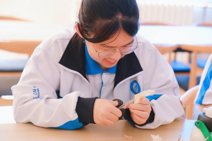 高一学生正处于动作技能发展的关键期,金老师的"手把手",既保护了他们尝试的热情,又通过精准指导缩短了"试错成本"。当学生们从手忙脚乱到逐渐熟练,他们真正理解的,是劳动中"专注"与"耐心"的价值——这些品质,比最终的作品更珍贵。