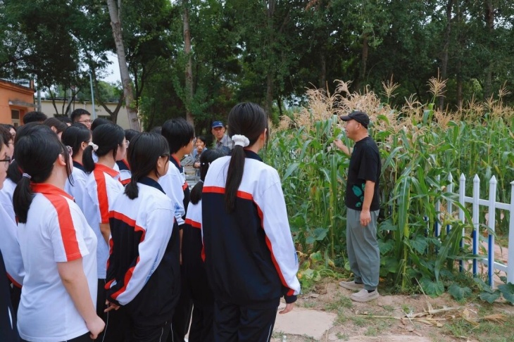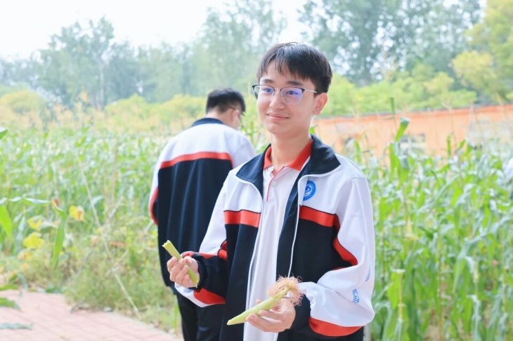敬立江老师站在田垄边,没有急着让大家动手。"先认认这位'老熟人'。"他举着玉米棒,从外形特点讲到生长价值,从药用价值说到营养价值。这些曾在课本上略过的知识点,此刻与眼前的玉米叶、泥土香交织在一起,突然有了具体画面。原来劳动从不是蛮干。当我们知道玉米要在哪个时期采摘才最甜,怎样才能快速采摘。劳动是知识的源泉,让我们在付出劳动前先理解土地的语言,在行动时多一分敬畏与智慧。