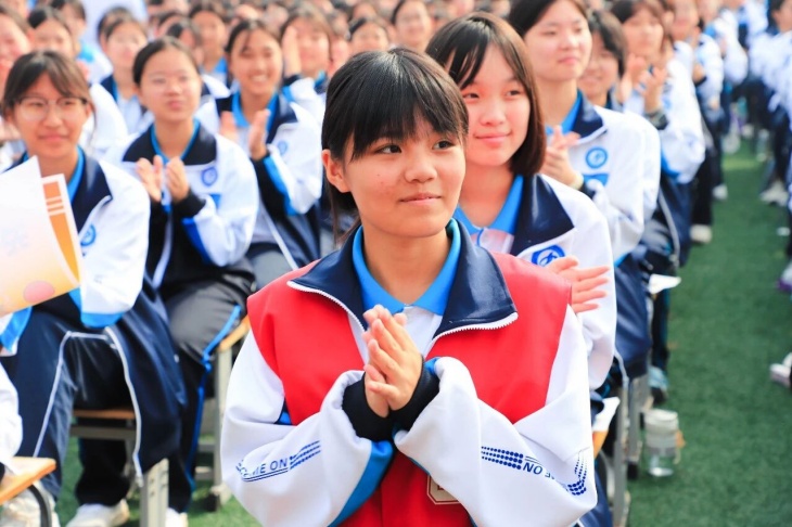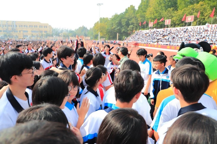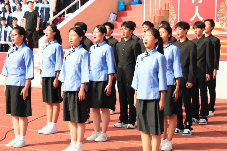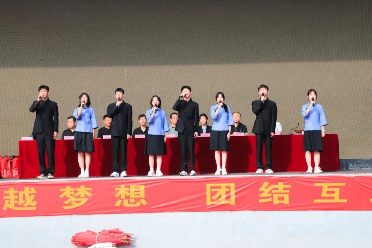 “少年强则国强,少年独立则国独立”,一场题为《少年中国说》的集体朗诵将现场的气氛再推向深情与昂扬的高潮。同学们用铿锵之声诠释着运动赛场上“永不放弃、追求卓越”的拼搏精神与少年一代“矢志报国、砥砺前行”的理想信念的共鸣,愿以吾辈之青春,捍卫盛世之中华!这场集体朗诵引得台下师生无不动容,掌声经久不息。