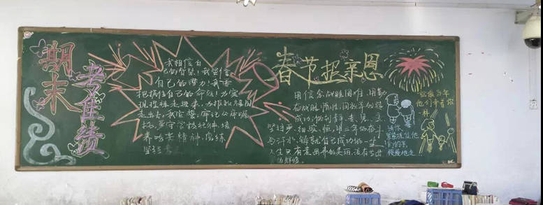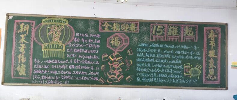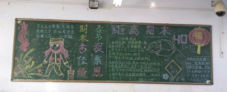 期中考试已经结束了,离春节的脚步越来越近了,各班争先恐后的为期末做了充足的准备,为了期末能考出好的成绩,同学们加大马力去冲刺期末,他们的计划、行动与目标都显示在了黑板报上。为了感恩父母,能让父母在春节的时候露出满意的笑容,同学们的表现也显示在了黑板报上。同学们两两一组通过合作精神激发创新能力,把他们的明天绘制在黑板上。宏达高二年级部对高二各班板报进行评比活动。