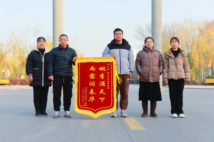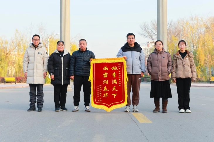 “桃李满天下,雨露润春华”——这面锦旗上的赠言,是对教师职业最诗意、最贴切的写照。“桃李满天下”,寓意着教师教书育人的丰硕成果,是每一位教育工作者毕生追求的荣耀;“雨露润春华”,则生动刻画了老师如春雨般润物无声的教诲与关爱,滋养着每一位如春日花朵般的学生茁壮成长。这面锦旗,正是对我校教师以德施教、用爱育人教育理念的生动诠释。