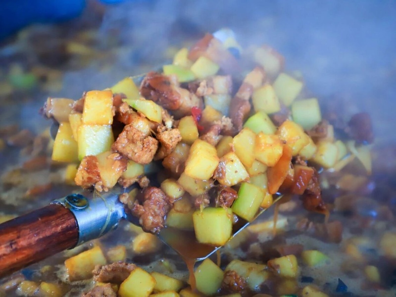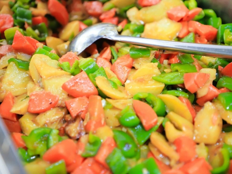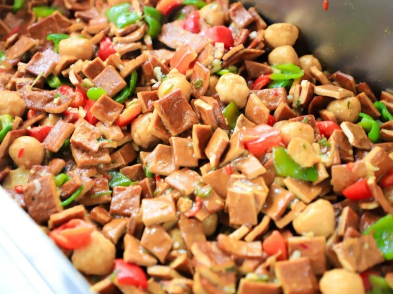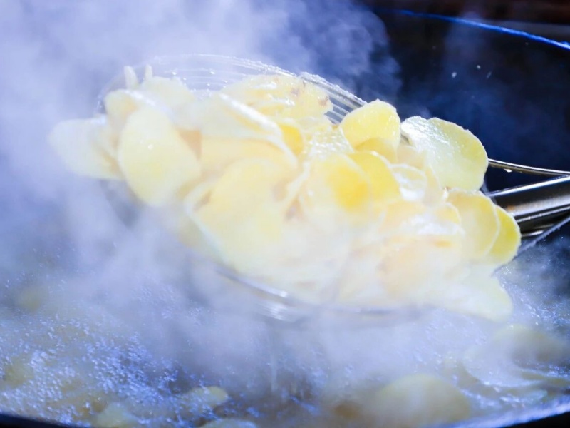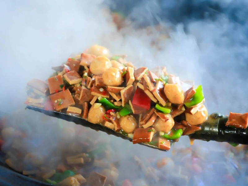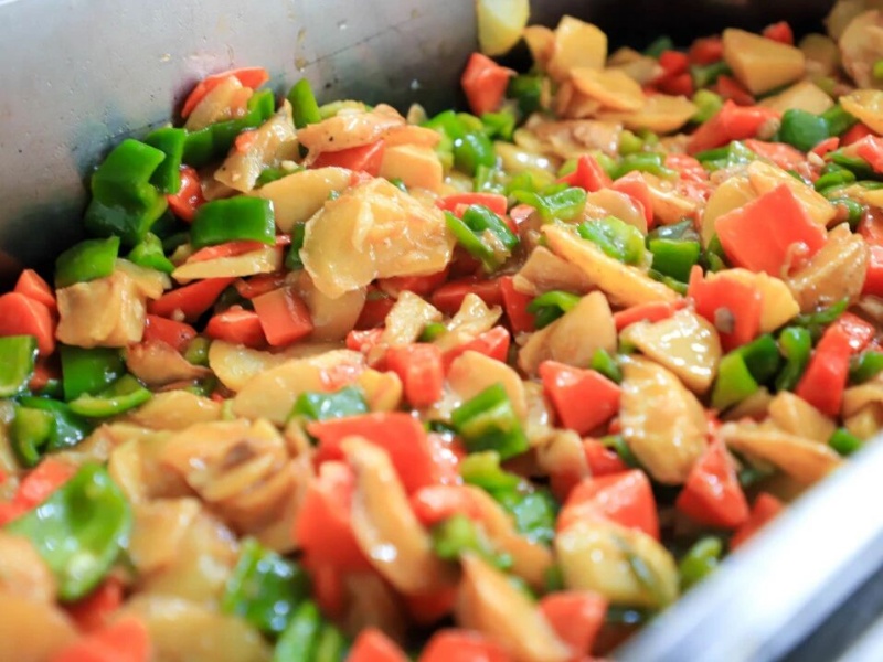 当食材遇到温度,香味便开始弥漫。科学的配比、精准的控温,锁住营养,激发本味,排风系统轻声运转,只留下了阵阵饭菜香味。美味烹制中……烹炒油炸与面食荟萃经过工作人员的精心制作,一道道美味的菜品纷纷出炉。