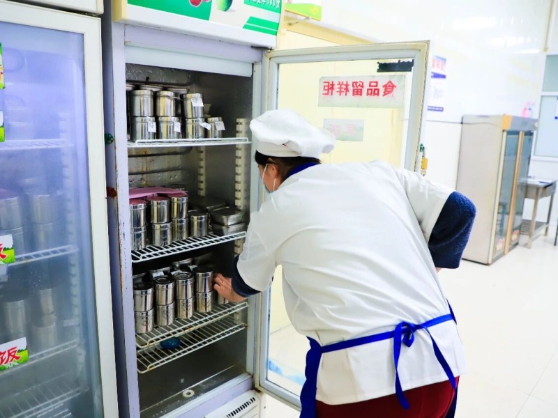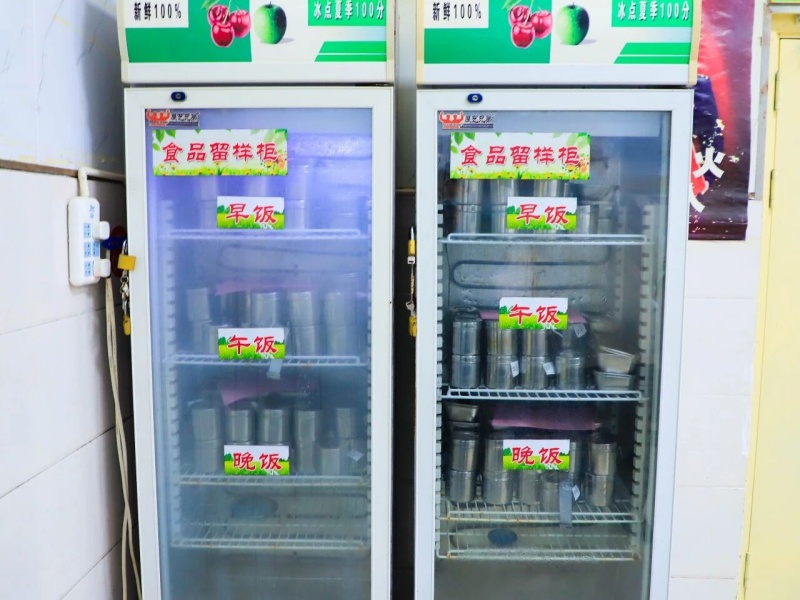 每餐所有的成品出锅后,都会被监控人员采集样品,称重留样,赋予专属标签,在恒温的留样柜中保存48小时。这是一份无声的承诺,也是一份随时可查证的安心。