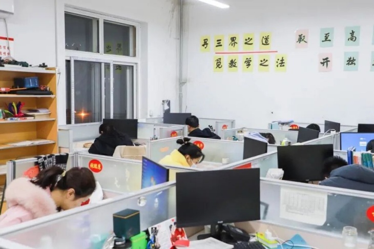 晚自习结束,办公室的灯还亮着