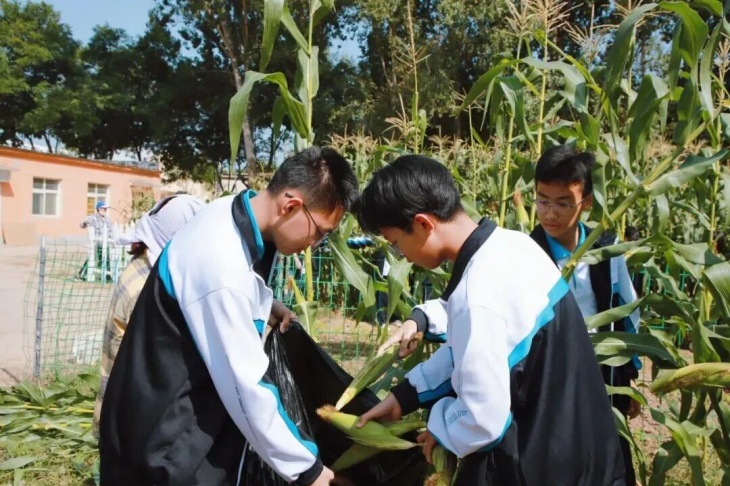 9月9日,高一新生刚结束难忘的军训时光,就被带到了校园西侧的劳动基地。玉米田正翻涌着波浪——这是新课改下的"实践课堂",用最朴实的方式,给孩子们补上"土地、汗水与收获"的重要一课。