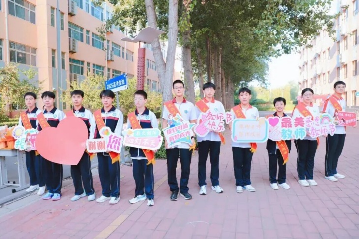 9月10日,第41个教师节如约而至。我校以一场“以花为媒”的温暖仪式,将尊师重教的心意化作晨间的第一束光——校领导与学生早早守候在教学楼门口,用一束花、一个拥抱、一句“老师辛苦了”,为教育工作者送上最朴素的致敬。