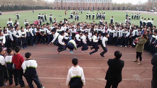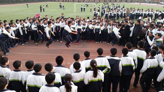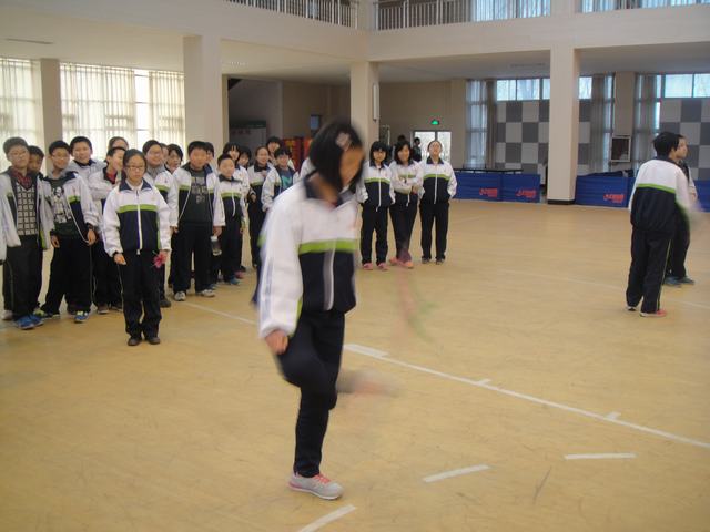 2015年3月22日我校操场人头攒动,不时传出阵阵欢呼呐喊声,初一年级正在举行一场别开生面的跳绳、踢毽子比赛。经过了一轮又一轮的激烈角逐,1403班的同学们过关斩将,勇夺第一。
