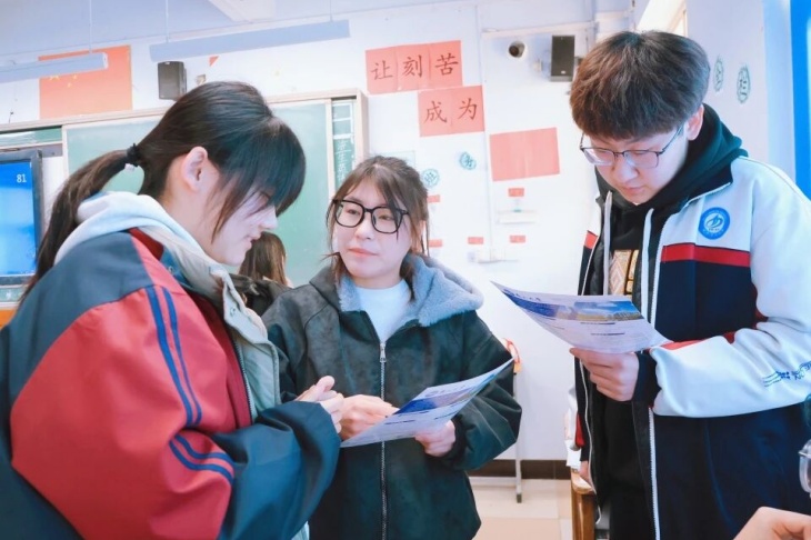 在各班教室,毕业生们围绕“如何高效备考”“如何调整心态”“如何科学填报志愿”等核心话题,结合自身经历,娓娓道来。他们坦言:高三不是“熬时间”,而是“提效率”——专注比时长更重要;焦虑不可怕,可怕的是被焦虑吞噬——要学会与情绪共处;大学不是终点,而是新起点——唯有持续努力,才能真正“破圈”。互动环节中,高三学子踊跃提问:“学姐,理综时间总不够怎么办?”“学长,如何在压力下保持稳定发挥?”……面对一个个真实而迫切的问题,学长学姐们耐心解答,金句频出,现场掌声不断,笑声与思考交织成青春最美的和声。