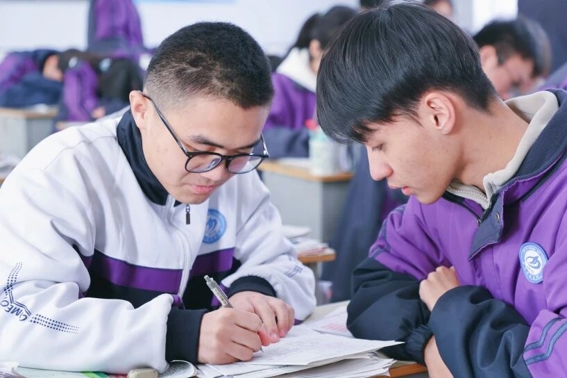 课间十分钟,不只是老师的“答疑专场”,更是同学间的“智慧碰撞场”。走廊一角、教室后排,常常能看到三五成群的同学围在一起,互相提问、讲解思路、核对答案。“你这道题怎么做的?”“我来给你讲讲我的方法!”没有孤军奋战,只有并肩同行。在这段冲刺路上,他们既是竞争对手,更是彼此最坚实的战友。