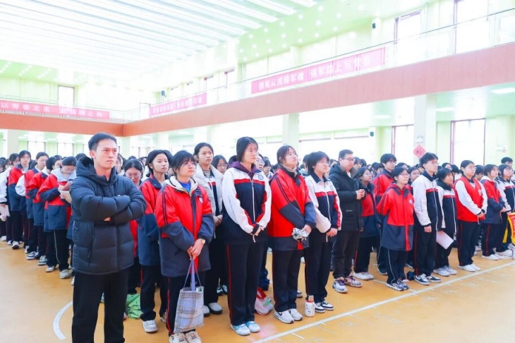 升旗仪式大会在庄严的国歌声中拉开帷幕,全体师生肃立齐唱,铿锵的歌声里饱含着对学业的热忱、对教育的坚守,也凝聚着同心同向、携手奋进的强大力量,为本次表彰大会奠定了庄重而热烈的基调。新程/启梦/绘新篇