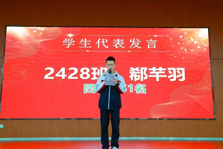 榜样发声表彰过程中,各领域优秀代表依次登台发言,分享心得感悟,传递榜样力量。优秀学生代表2428班郗芊羽、进步学生代表贾爱翔、优秀教师代表杨云、优秀学科组组长代表常颖超、优秀班主任代表国建松、十佳班委代表杨墨轩,分别从学习方法、成长突破、教学心得、团队建设、班级管理、学生工作等方面展开分享,用最真实的经历、最真挚的话语,为全体师生带来启发与激励,让榜样的力量直抵人心,催人奋进。