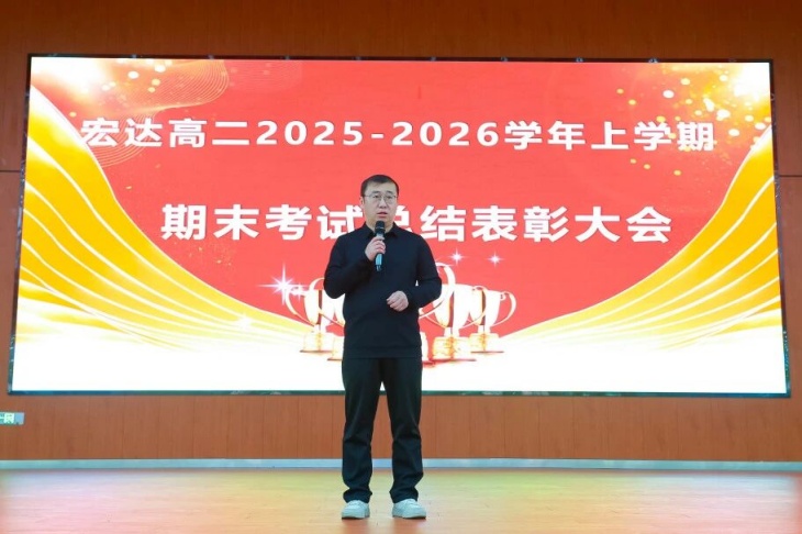 周主任讲话大会最后,周喜峰主任作总结发言,他充分肯定了高二年级全体师生本学期以来的努力与成果,从9月开学至今,师生们展现出的良好精神风貌和各项工作的显著进步,赢得了学校领导、家长与社会的广泛认可。他以“人在一起叫群体,心在一起叫团队”寄语全体师生,强调成绩的取得离不开每一位宏达人的同心同德、携手并肩。同时,他向全体师生提出殷切期望,希望大家继续保持奋进姿态,同向而行、同心而为,在未来的学习与工作中再创佳绩,顶峰相见。