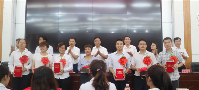 周喜峰副主任首选宣读了新学年各年级的人事安排及开学之初的各项事宜,初中部教导处主任李爱群针对新教师进行了细致的嘱托发言。董焕章书记宣读了《关于对2016—2017学年先进集体、先进个人的表彰决定》,姜敬竹等31人荣获优秀教师称号,宋彬等7人荣获模范班主任称号,曹兰英等19人荣获教研先进个人称号。白志宏校长等校领导为获奖老师颁发了证书和奖品,获奖教师合影留念,全场热烈的掌声是对获奖教师最好的认可!