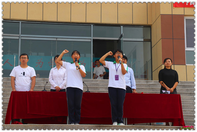 最后,是新同学们集体宣誓环节,大家举起右手,齐声高呼:“为了祖国的尊严,为了父母的期待……”略显稚嫩的声音蕴含着无穷的力量,期待着三年之后他们破茧成蝶的精彩时刻!