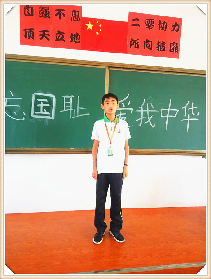 演讲与朗诵社团的同学们进行了“勿忘国耻 爱我中华”主题的演讲活动,各个班级在语文课前也举行了演讲活动,同学们高声朗诵梁启超先生的《少年中国说》。此外全校学生干部举行了爱国签名活动,还在“勿忘国耻 为中华之崛起而读书”等条幅上郑重的签下了自己的名字。在各项活动过程中,同学感受到了强烈的震撼,明白了今天的和平幸福生活来之不易,一定好好珍惜。
