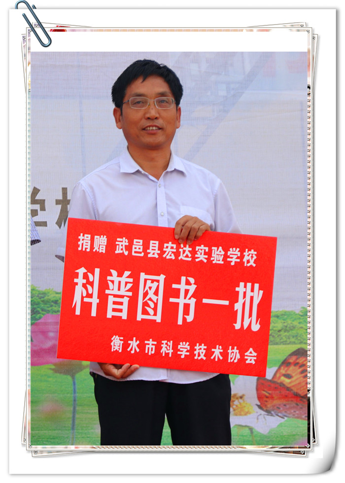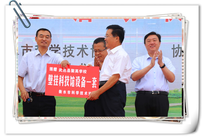 衡水市政协副主席韩克俭、市科协党组书记张永进、市科协荣宝礼、武邑县委书记刘勇、县委常委、农工委书记王丹、县人大副主任王忠民、县政协副主席王国庄、我校校长白志宏等主要领导和兄弟单位负责人参加了启动仪式。仪式由王忠民同志主持,共有三项内容:致辞,捐赠,宣布活动开始。