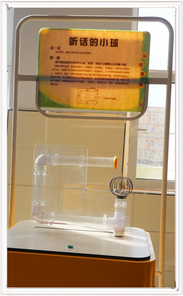 听话的小球:按下按钮,观察小球在气流中的运动情况。