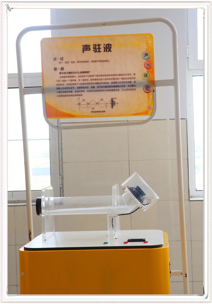 声驻波:按下“启动”按钮,调节声源频率,观察管中颗粒的振动。