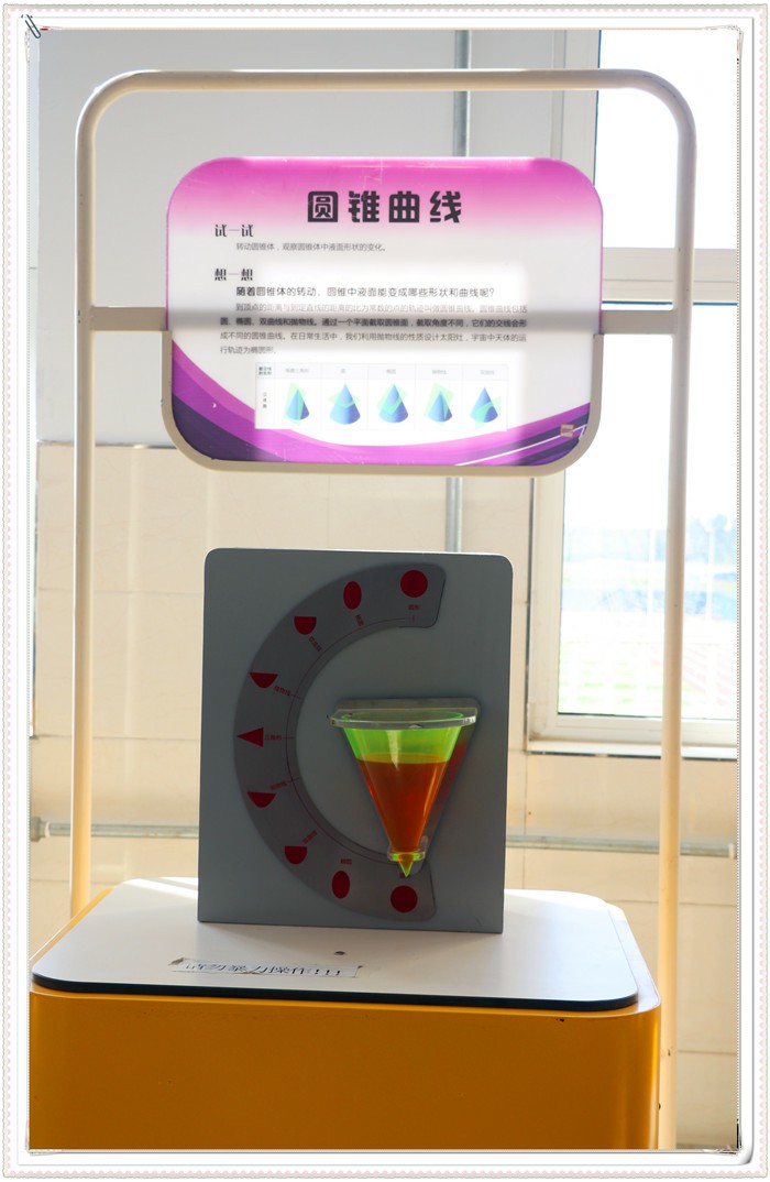 圆锥曲线:转动圆锥体,观察圆锥体中液面形状的变化。