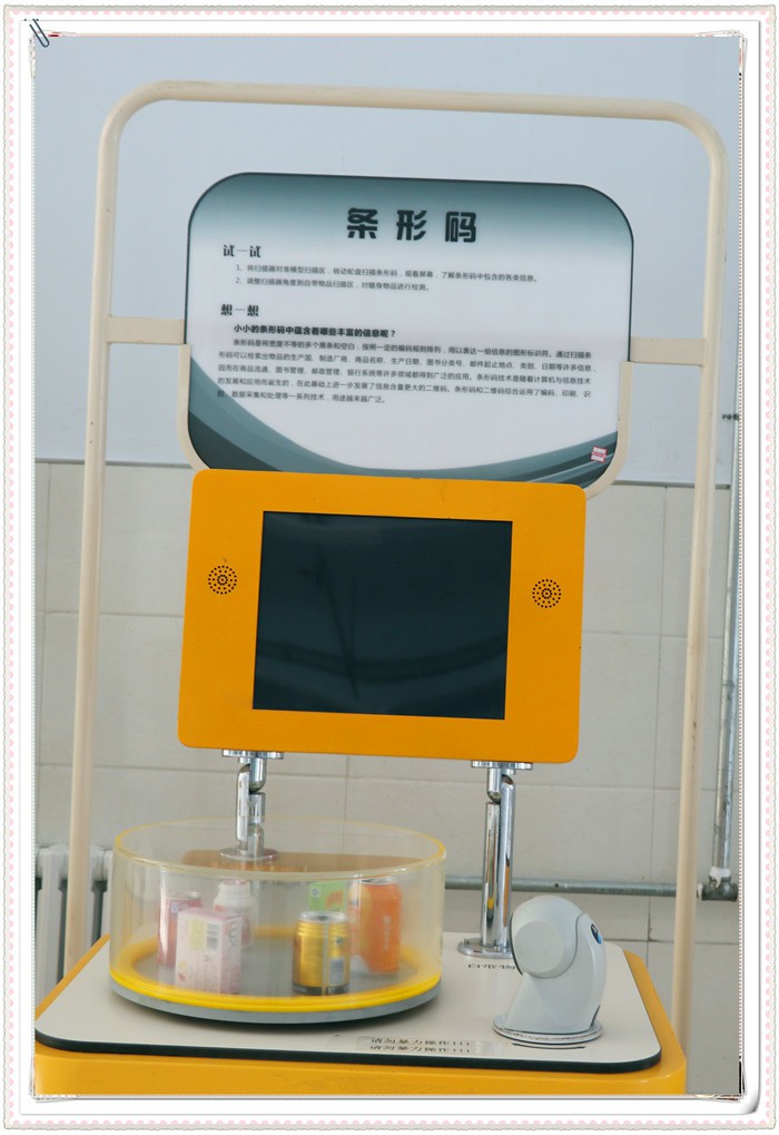 条形码:将扫描器对准模型扫描区,转动轮盘扫描条形码,观看屏幕,了解条形码中包含的各类信息。