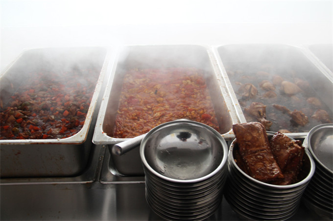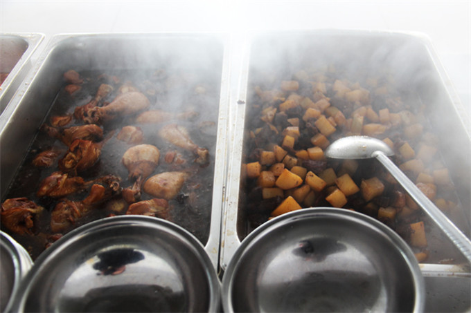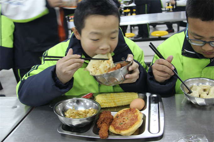 来到餐厅,看着热气腾腾的饭菜,令人垂涎欲滴的大虾,润泽的丸子,炸鸡腿,酥脆的烧饼,香糯的米饭,繁复精美的各色主食……食堂还特地加装了保温槽,无论是先到的同学,还是后来的同学,都能吃到热乎乎的食物,值班的老师,用温馨的守候,为同学们带来春阳般温暖柔和的关心。瞧,我们的同学们吃的多开心呀!