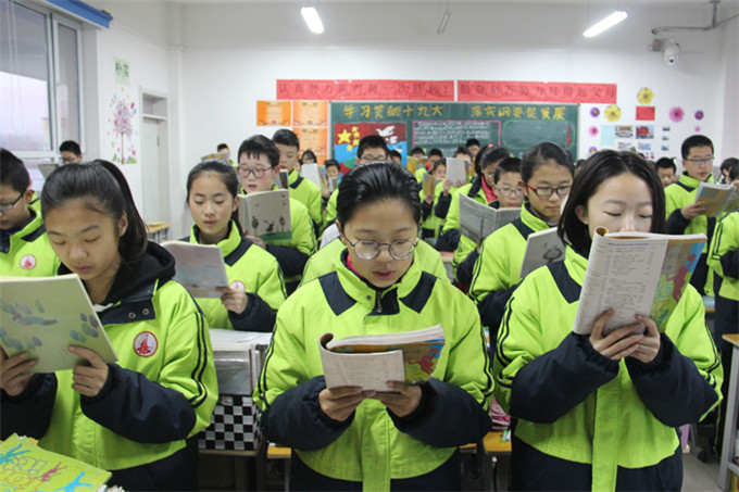 饱餐之后的同学们,来到教室,打开书本,大声朗读,个个充满激情!