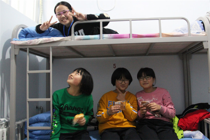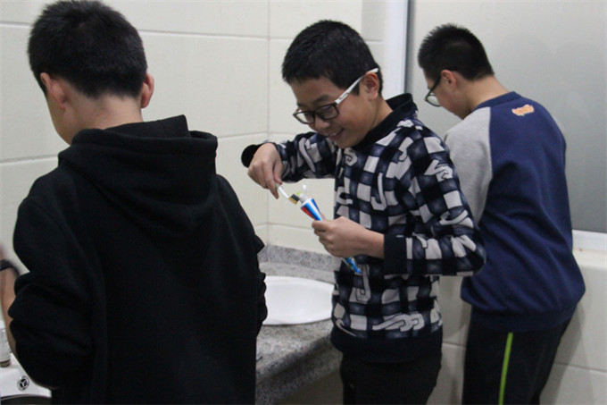 度过了充实的一天,夜幕降临,下了课,回到宿舍,吃块儿饼干,喝盒牛奶,洗脚、刷牙、洗衣服,一个宿舍的同学互相帮助,温馨、快乐萦绕着大家。同学们良好的生活习惯已经养成了,大家有条不紊的安排着自己快乐的生活,爸爸妈妈看到了吧,我们的孩子们多么棒,他们已经长大了。