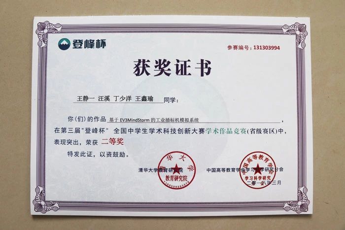 汪溪 基于EV3MindStorm的工业插标机模拟系统 二等奖