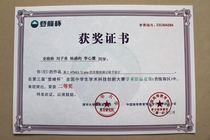我校学子在第三届“登峰杯”全国中学生学术科技创新大赛(省级赛区)中,表现突出,斩获桂冠。以下是获奖名单、作品名称及名次: