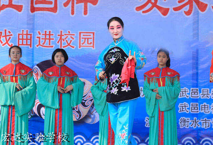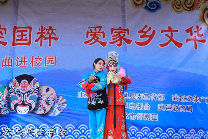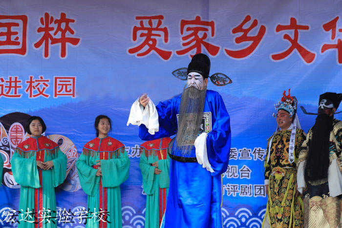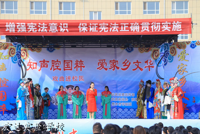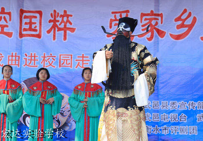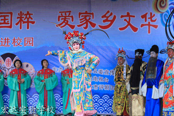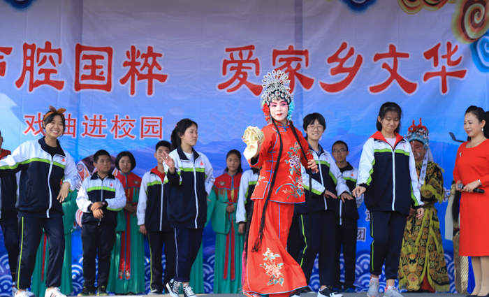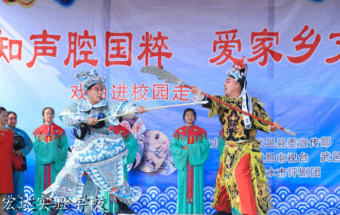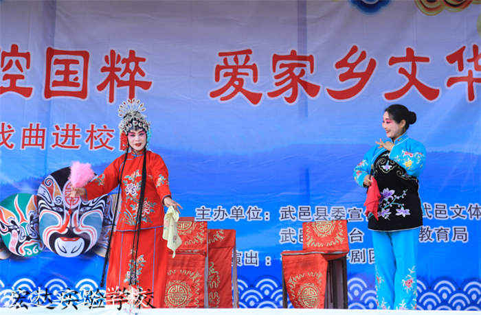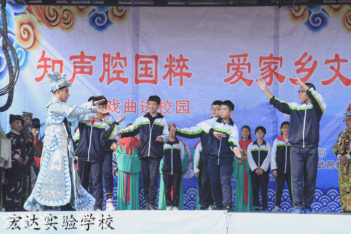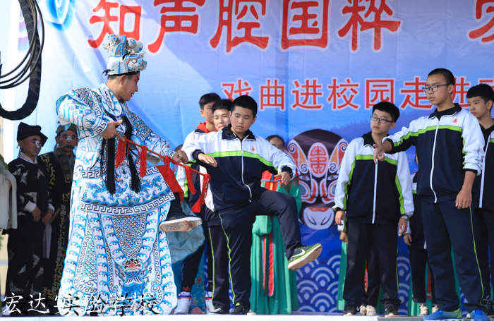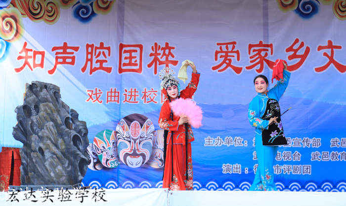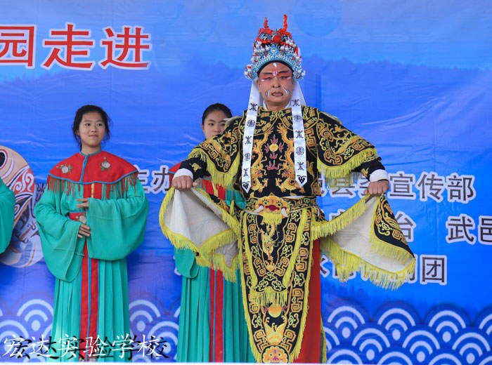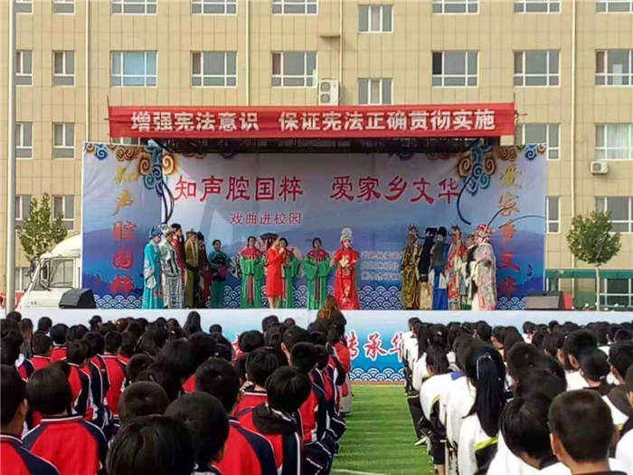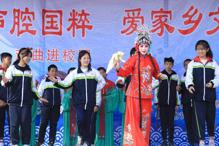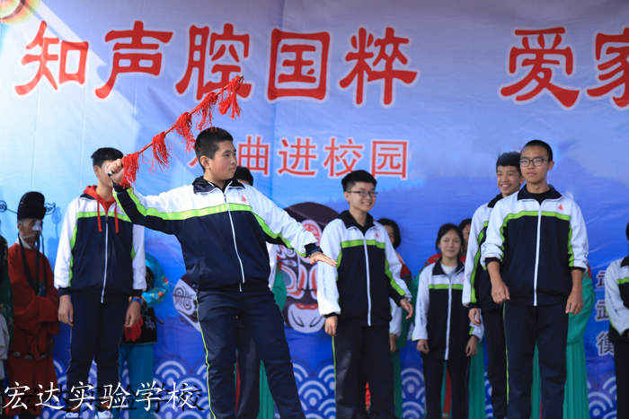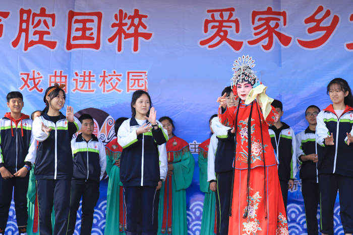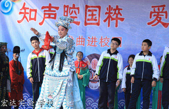 为让学生近距离接触和了解中华优秀传统文化,感受戏曲文化的博大精深,增强青少年学唱、爱唱传统国粹戏曲的热情,让同学们感受戏曲的魅力,10月15日这天,我校开展了戏曲进校园专项活动。